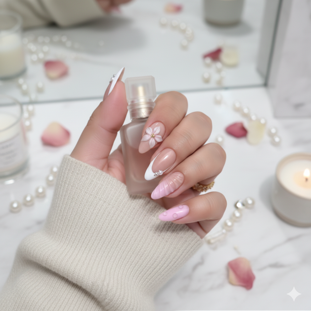 - Accents: Pearls, Raised Texture, and Minimalist French Tips